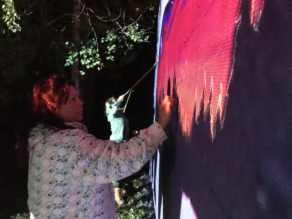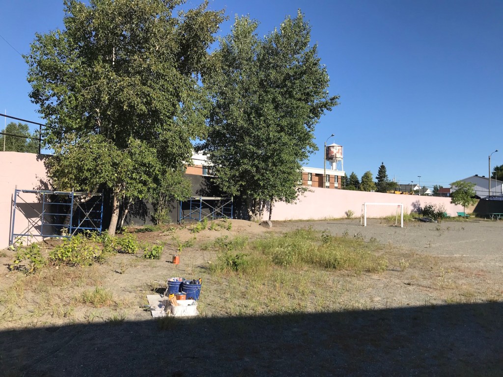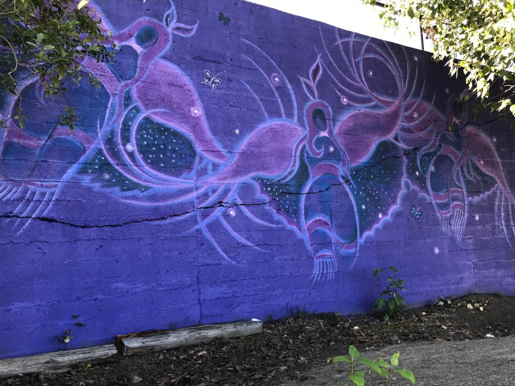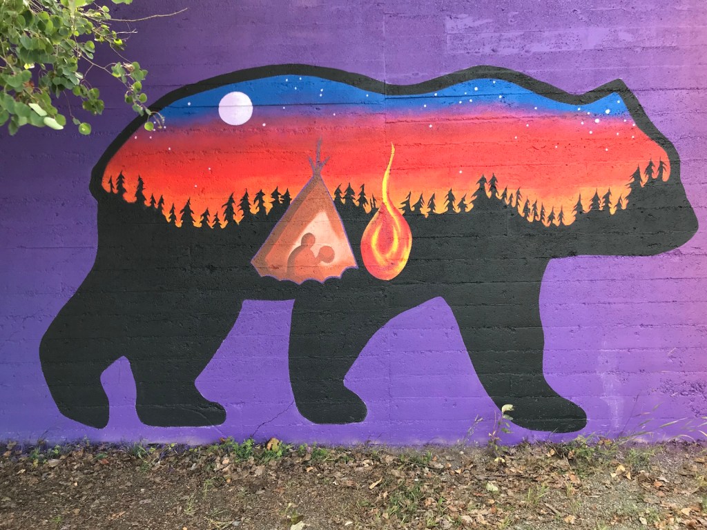 « Chasser les murs », murale de Claudette Happyjack, École Papillon d’or, Val-d’Or, août 2020.
