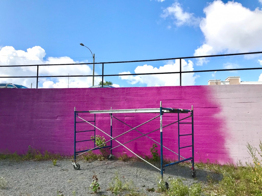 Dans le cadre de ce projet, mon mandat a été de transposer les oeuvres de Claudette pour en faire une maquette de murale. C’est l’école alternative Papillon d’or, située sur la rue Lévis, qui a la chance d’accueillir la murale sur le mur de sa cour intérieure.